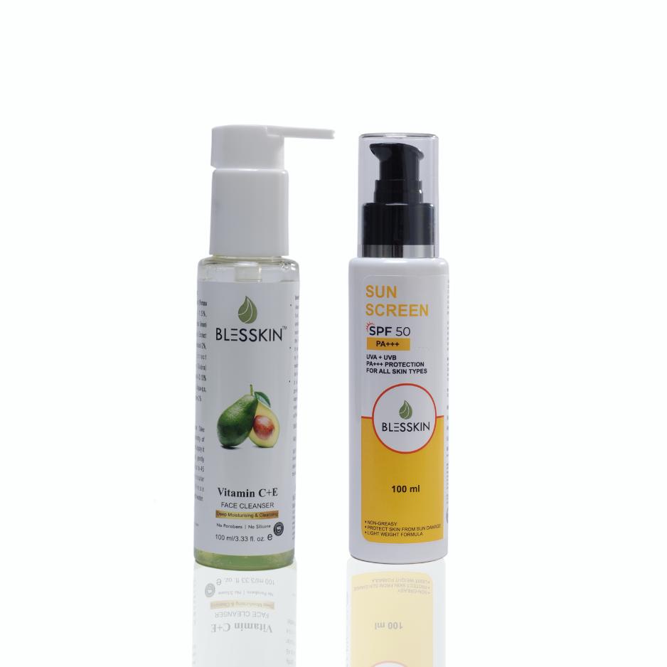 Blesskin Sunscreen & Vitamin C & E Face Cleanser Combo – Radiance & Protection